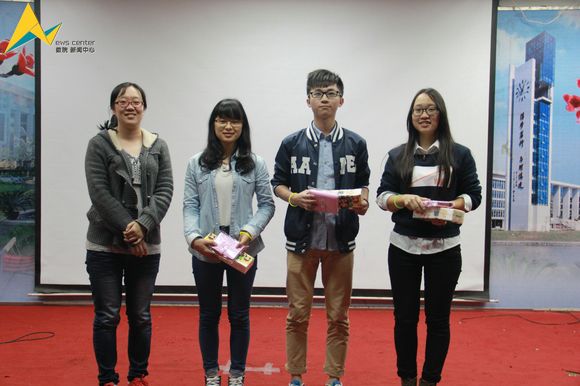 最后胡啟岚老师为此次晚会做了点评,她说晚会不仅为大家带来了的是快乐,而且增进了同学之间的情谊。经过观众和老师的选评,会声会影环节中,数学143班荣获最佳人气奖,信安131班的同学取得最佳演技奖的称号,最佳创意奖花落信计141班;在班级秀环节中,数学131班获得三等奖,数学141班获得二等奖,数学134班荣获桂冠。