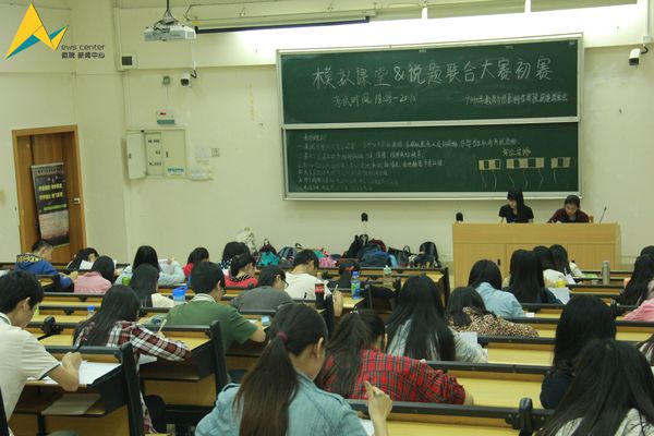 参赛的同学在开考前15分钟签到后进入课室准备笔试,18:30考试正式开始。课室外面,是激烈的辩论声音。但,参赛同学丝毫没有因此而受到影响,仍然静心做题。本次考试选用高考数学题目,注重考查参赛同学的发散性数学思维,创新的思考方式以及独特的解题方法。同时,书写清晰,分析有条理也是考查的一部分。此次的笔试成绩占初赛成绩的百分之四十。初赛的另一组成部分是模拟课堂。此次大赛包括初赛,复赛以及最后的决赛。